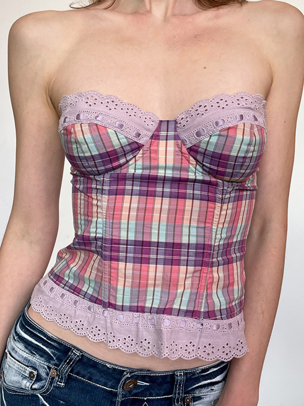Bandeau-Top mit Spitzen-Patchwork-Büste