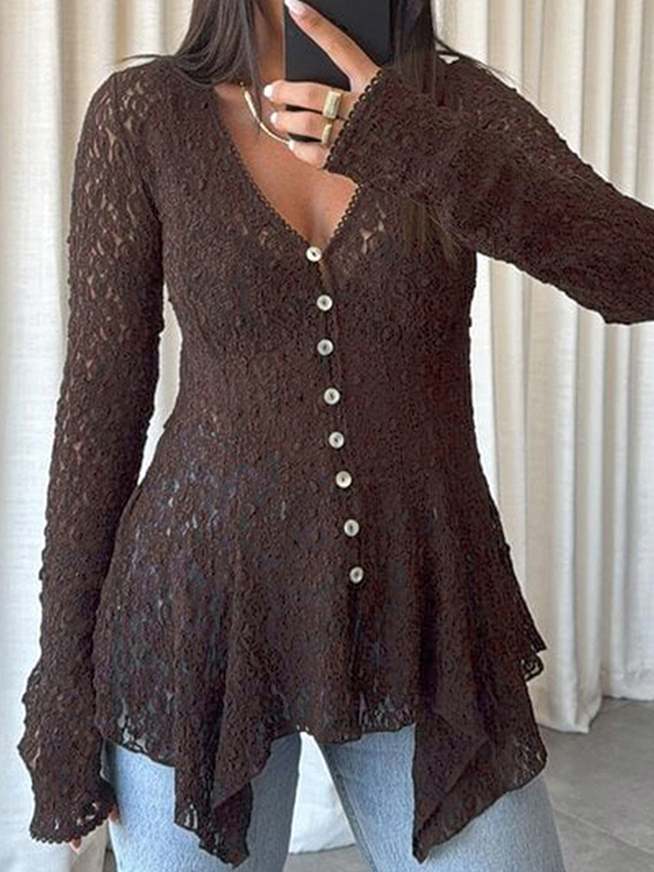 Einfarbige Strickjacke mit Spitzen-Patchwork
