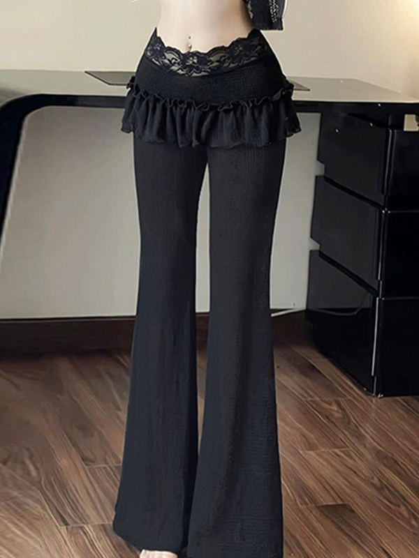 Schlaghose mit Spitzen-Patchwork und Holzbesatz