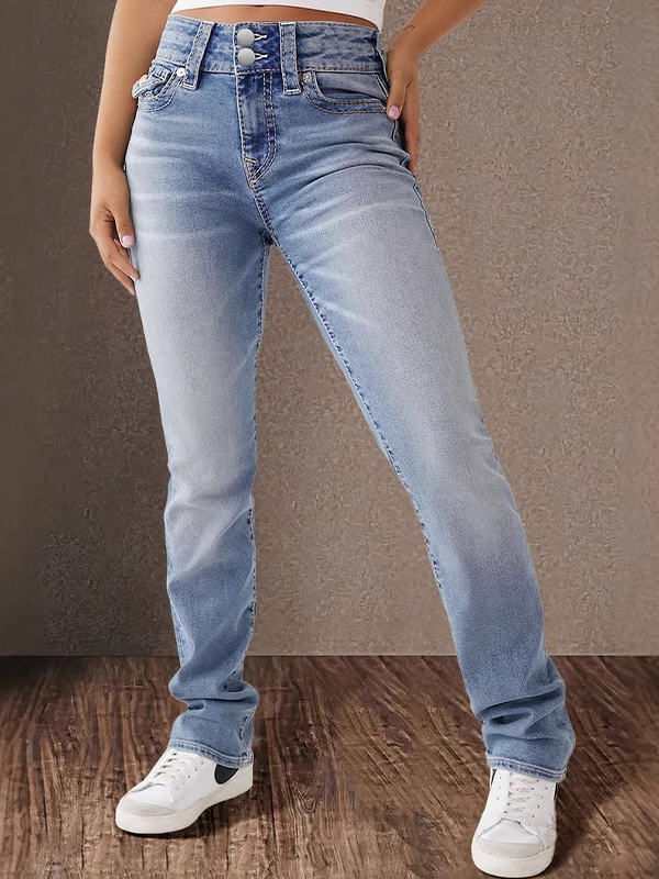 Schlagjeans mit zwei Knöpfen und bauchfreiem Bein
