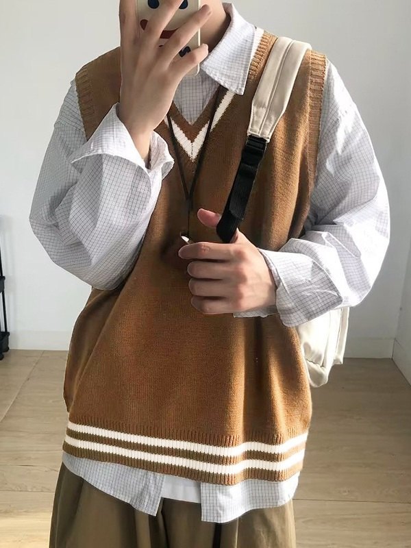 Einfarbiger, lockerer Strickpullover für Herren