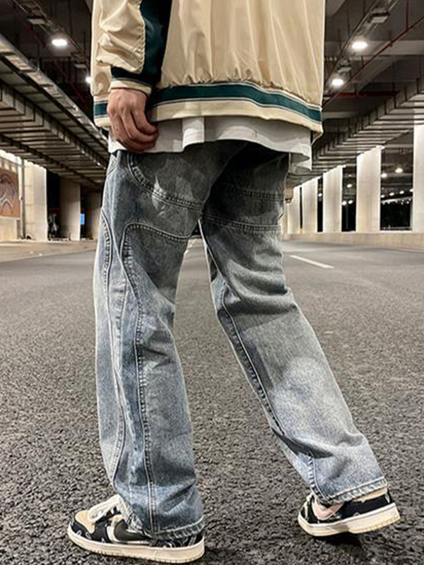 Design Lightning Crack Wash Lockere Jeans