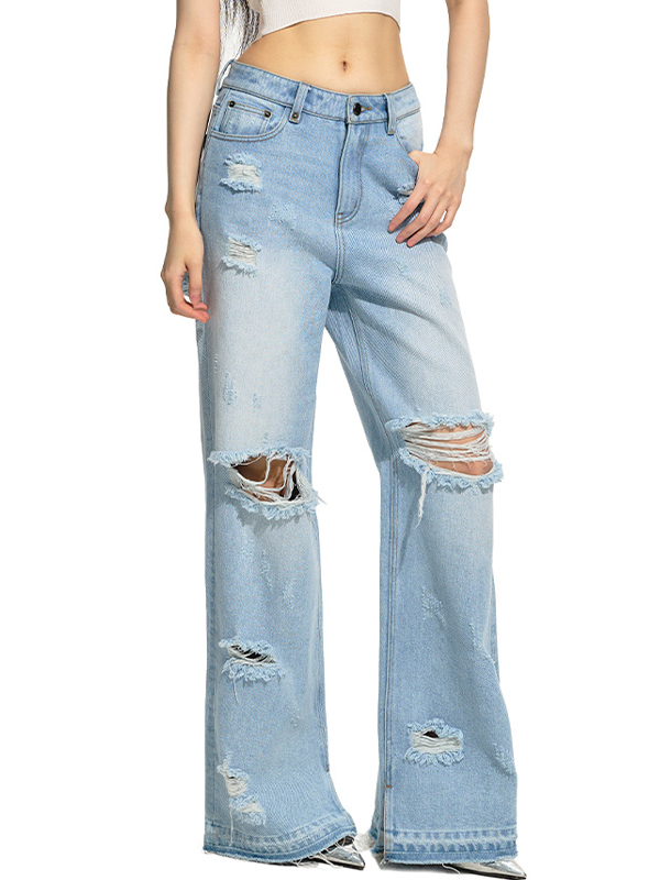 Knielange Denim-Shorts mit ungesäumtem Saum