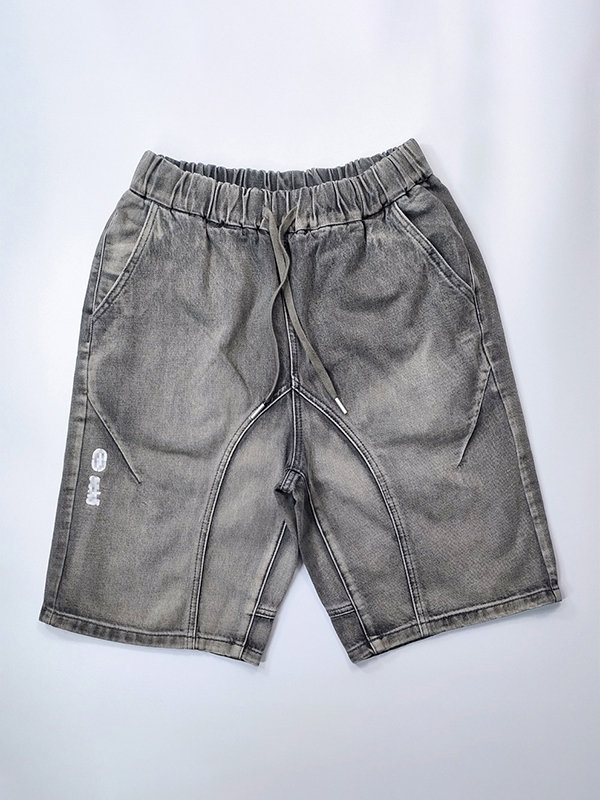 Grau gewaschene Splice-Kordelzug-Shorts für Herren