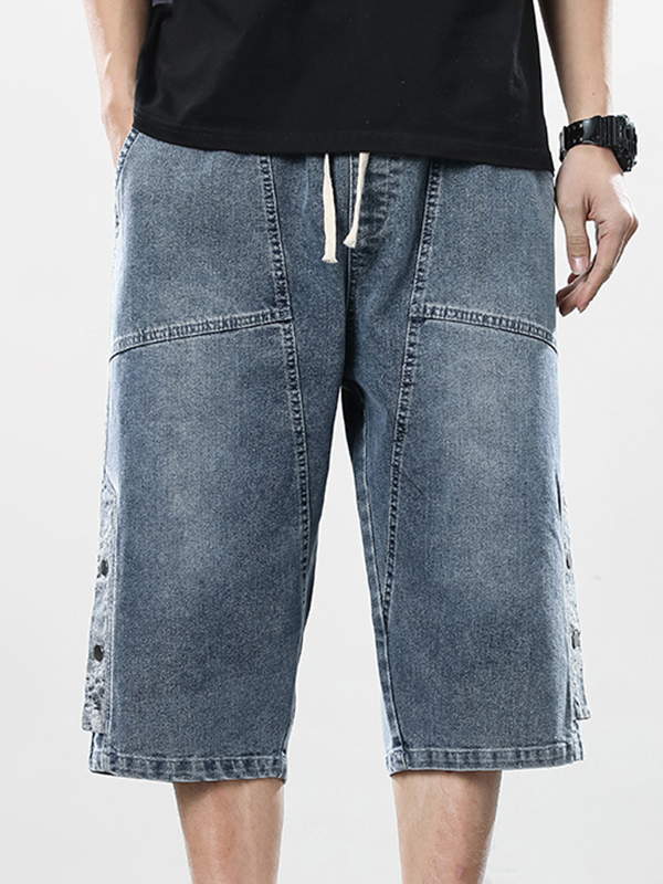 Herren-Jeansshorts mit Knöpfen im Distressed-Look
