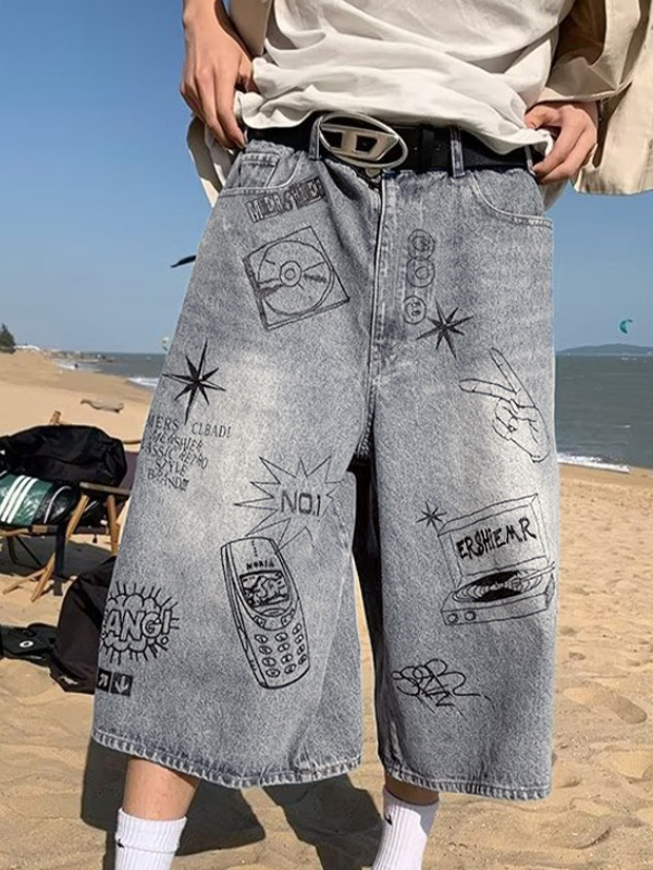 Herren-Shorts mit Vintage-Graffiti-Print