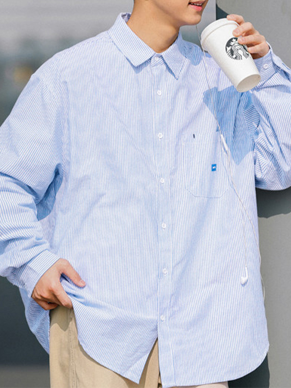 Vielseitige Nadelstreifen-Langarmbluse für Herren