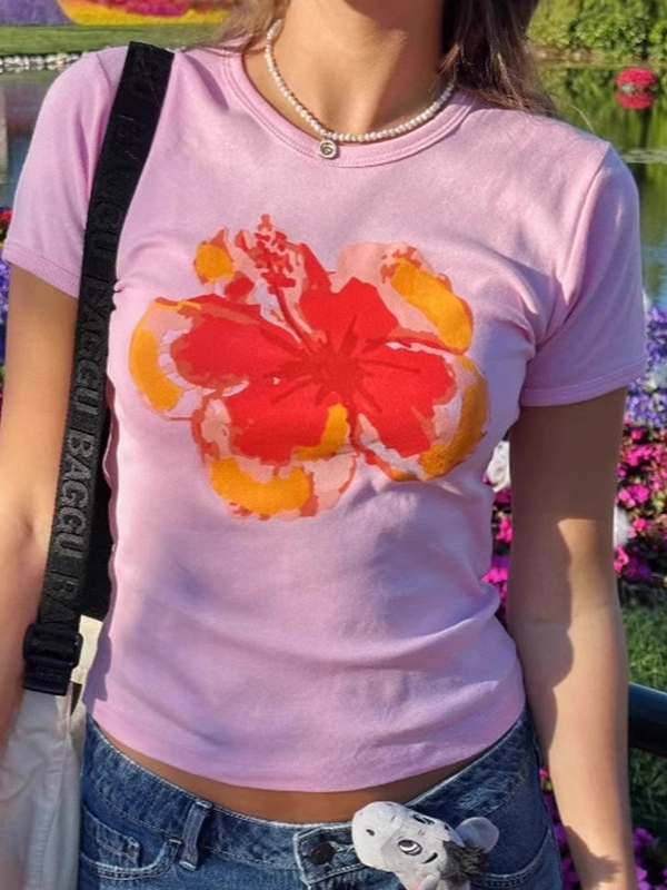 Kurzarm-T-Shirt mit Blumendruck