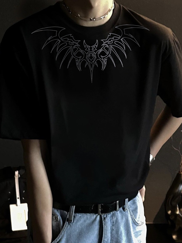 Kurzarm-T-Shirt mit Flügel-Print am Hals für Herren