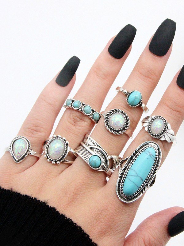 8-teiliges Vintage-Stein-Anhänger-Ring-Set