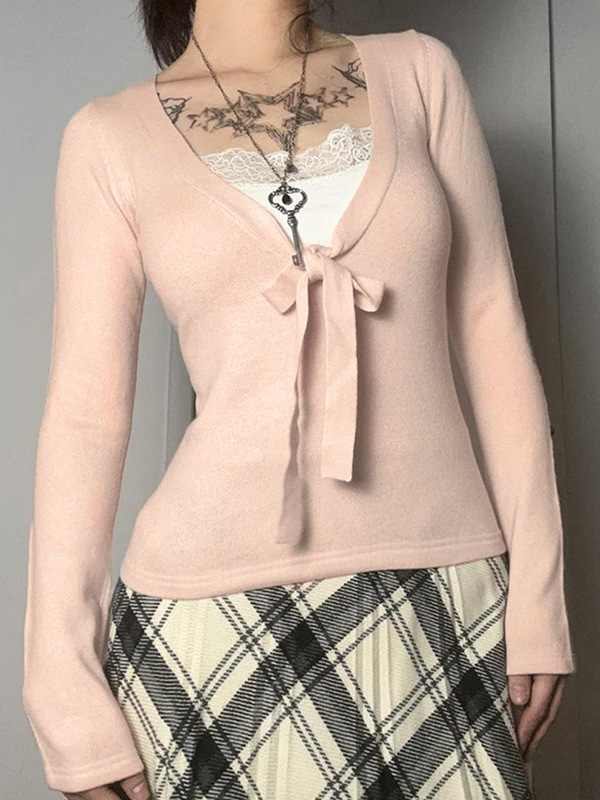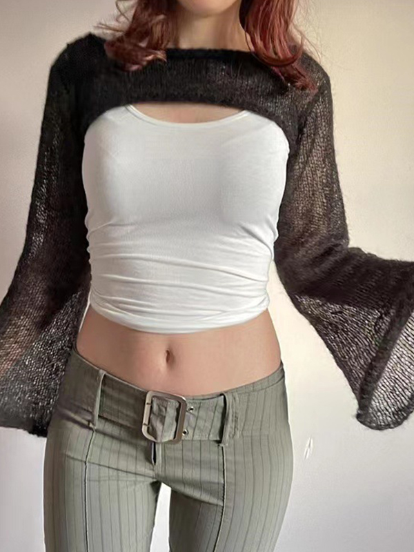 Einfarbige, hohle Langarmstrickwaren