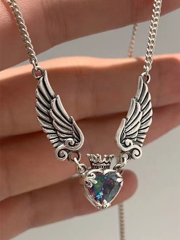 Geflügelte Zirkon-Herz-Anhänger-Halskette