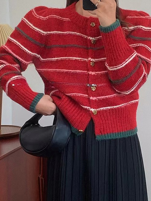Kontrastfarben gestreifter Kurzstrick-Cardigan