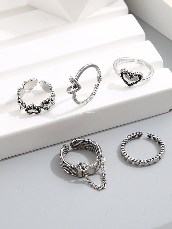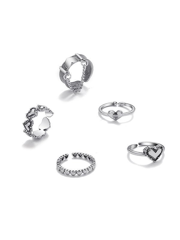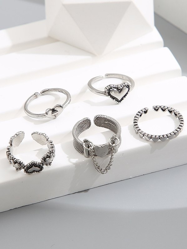 5 Stück Herz Dekor Silber Manschettenring