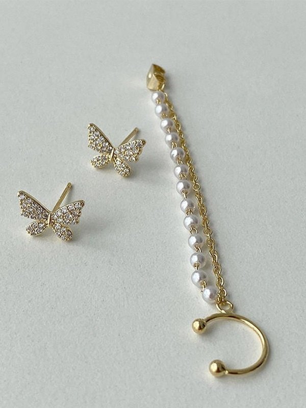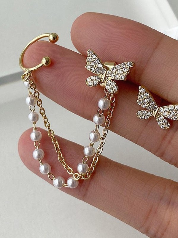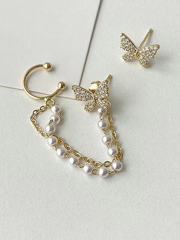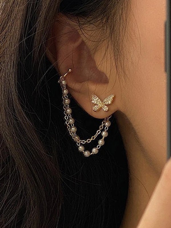 Faux-Perlen-Quasten-Strass-Schmetterlings-Ohrring