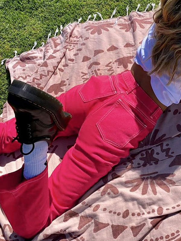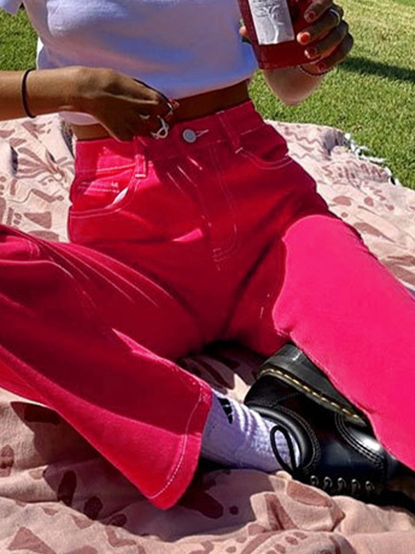 Stil: Casual/Street/Vintage/Y2K Hauptmaterial: Baumwollmischung Passform: Boyfriend-Passform Beschreibung: Diese Jeans hat eine entspannte Passform, mit 5 klassischen Taschen, kontrastierenden Ziernähten und einem Reißverschluss und Knopfverschluss vorne.