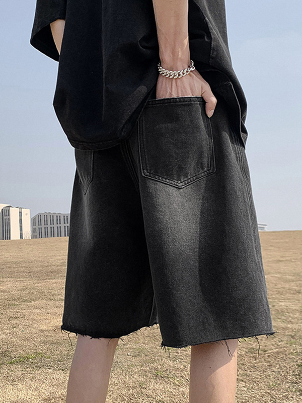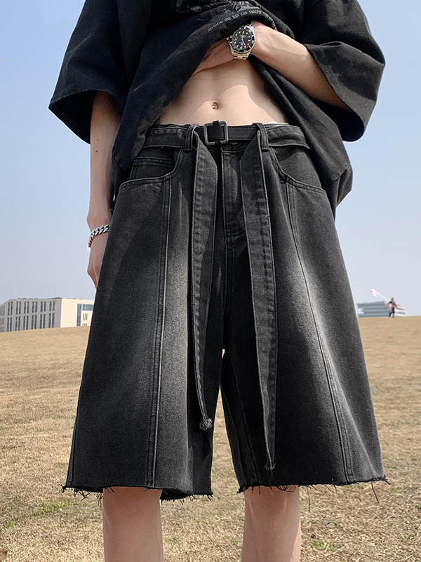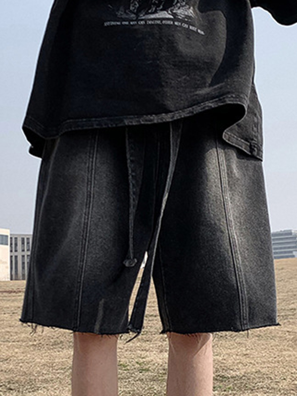Herren-Shorts zum Binden mit ausgefranstem Saum in Waschung