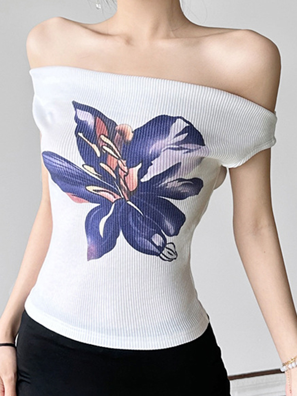 Kurzarm-T-Shirt mit One-Shoulder-Print