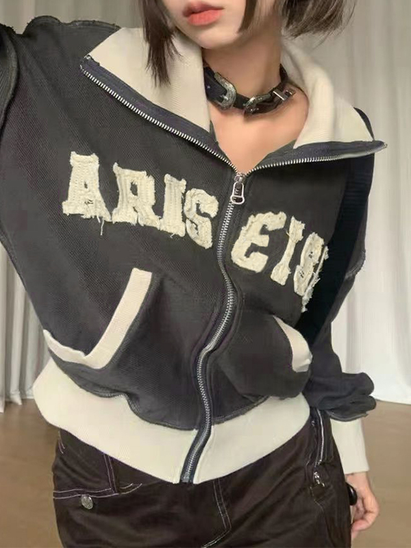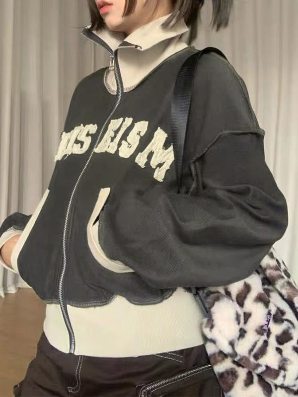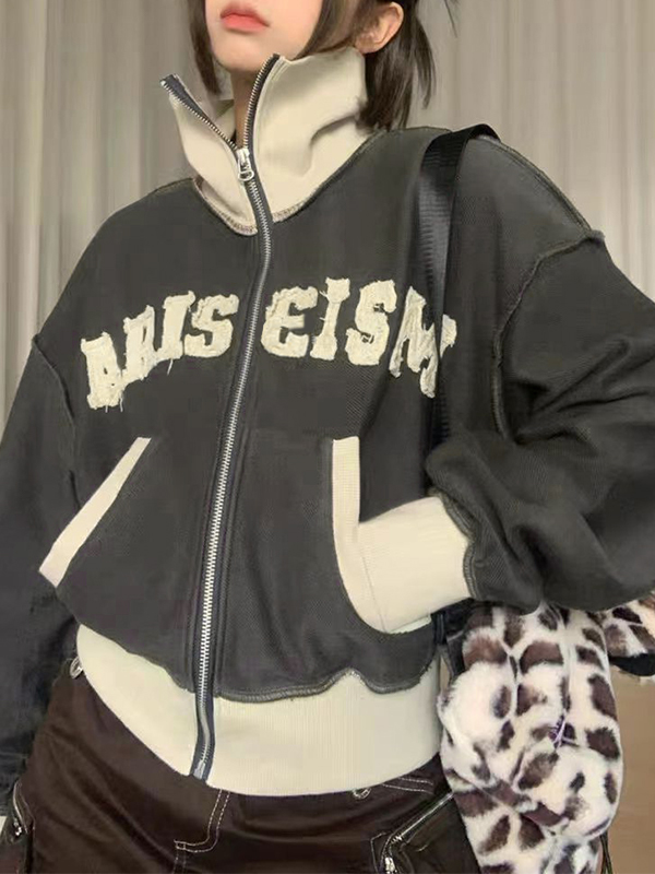 Schreibe die erste Bewertung für „Kurze, hochgeschlossene Jacke mit Spleiß-Buchstaben-Patch“