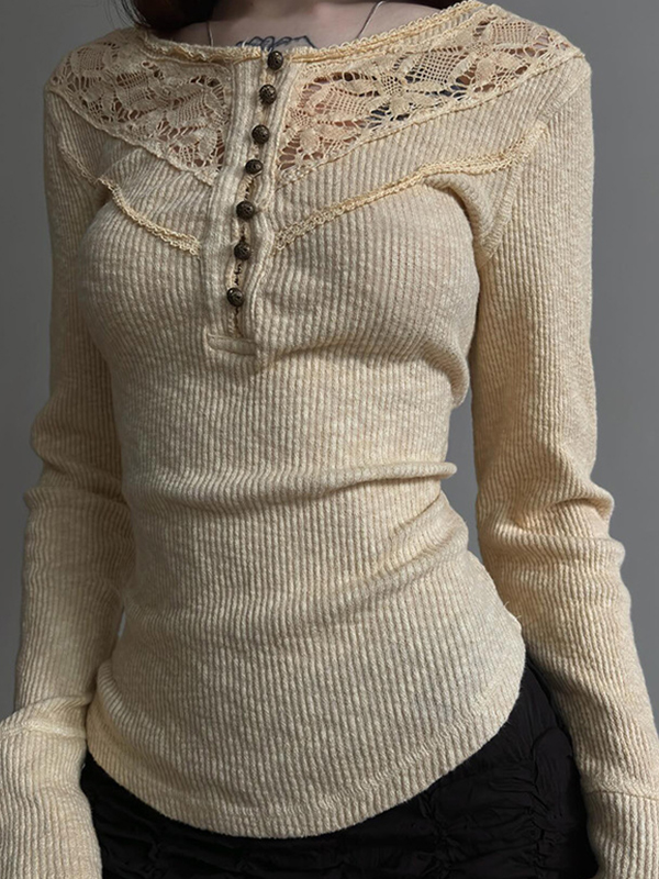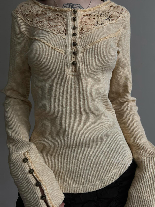 Langärmliger Strick mit Spitzennähten und Schlitz