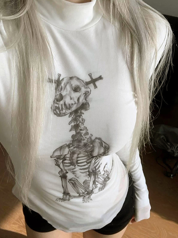Langarmshirt mit Mesh-Einsätzen und Totenkopf-Print