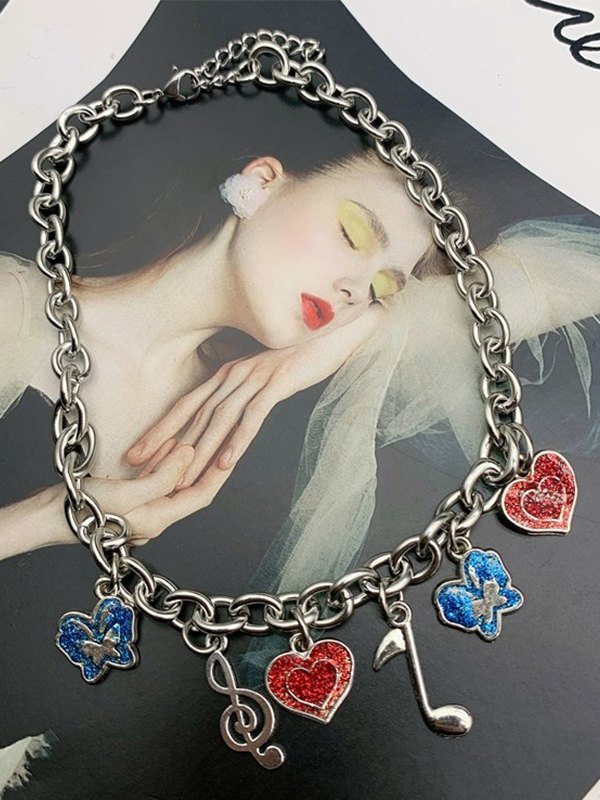 Romantische Schmetterlings-Herz-Charme-Halskette