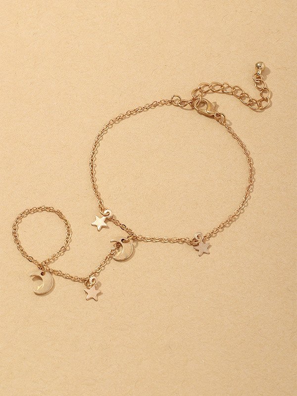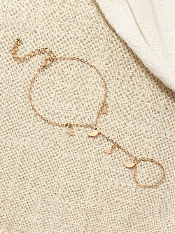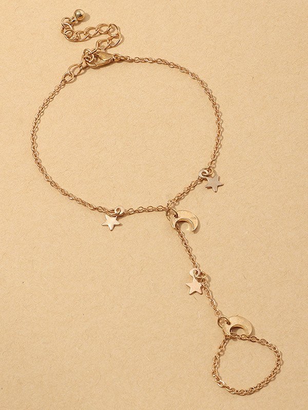 Stern-Mond-Fingerring-Ketten-Sklaven-Armband