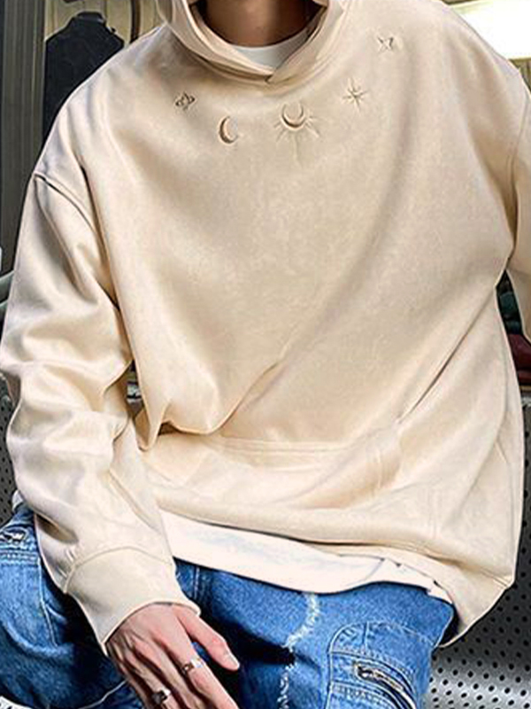 Einzigartig Design: Der Kapuzenpullover verfügt über ein cooles Wildleder-Design mit einem Mond- und Stern-Stickdruck und bietet eine einzigartige Mischung aus Vintage-, Punk- und Hip-Hop-Stilen, die sich leicht von der Masse abheben.