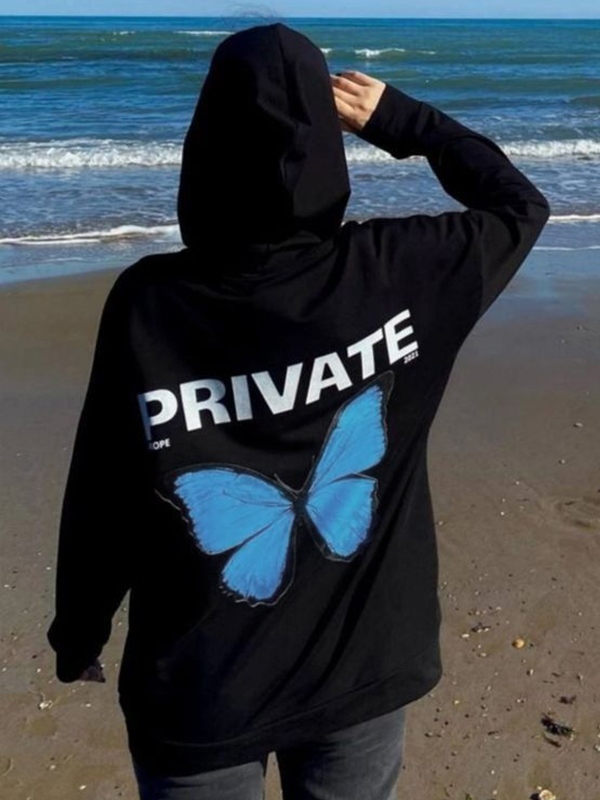 Einzigartiges Design: Der Hoodie verfügt über einen wunderschönen Vintage-Schmetterlings-Graffiti-Druck, der ihn zu einem herausragenden Stück in jeder Garderobe macht.