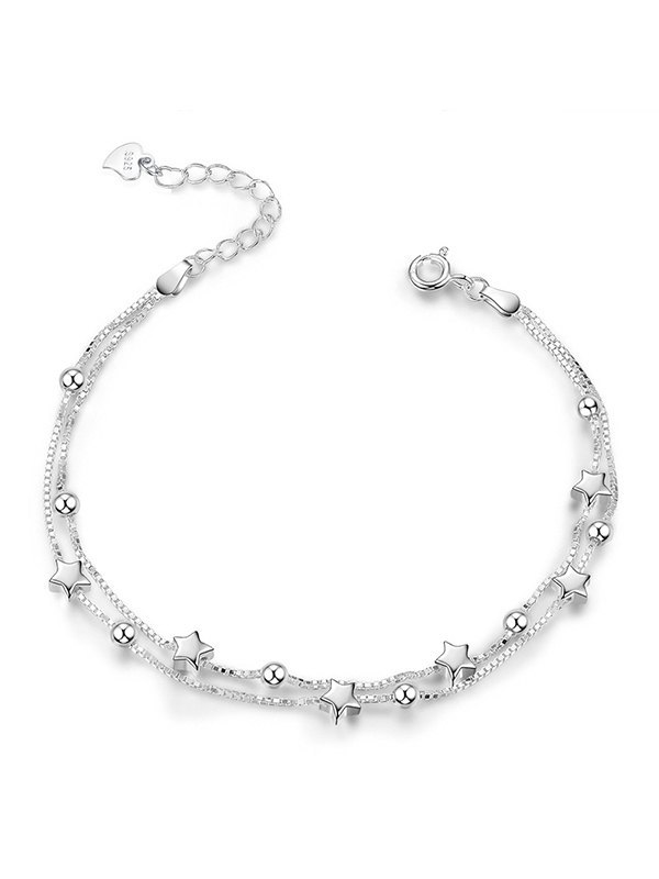 Doppellagiges silbernes Sternarmband
