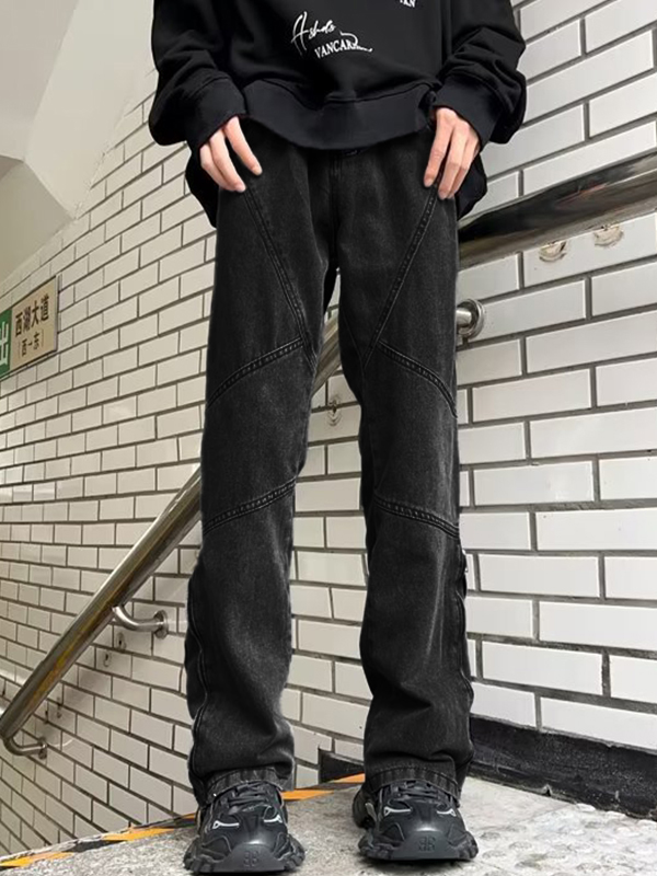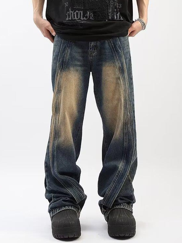 Verwaschene, lockere Patchwork-Jeans für Herren