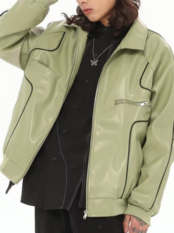 Kunstlederjacke mit Reißverschluss und Paspeldetail