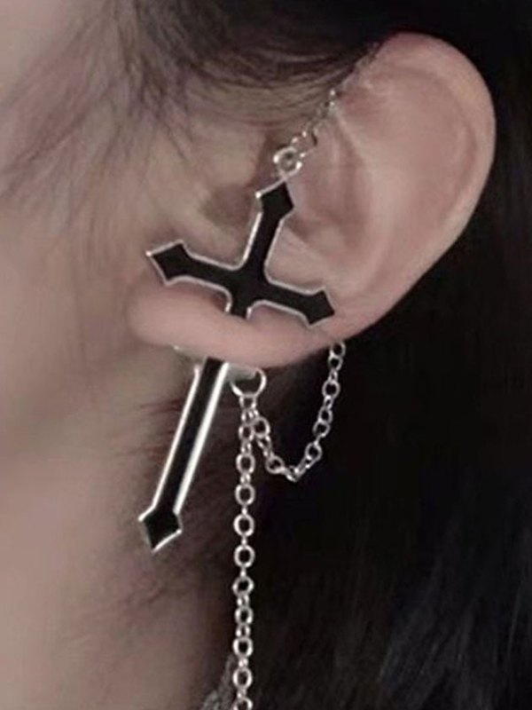 Kettenverzierter Kreuz-Anhänger-Ohrstecker