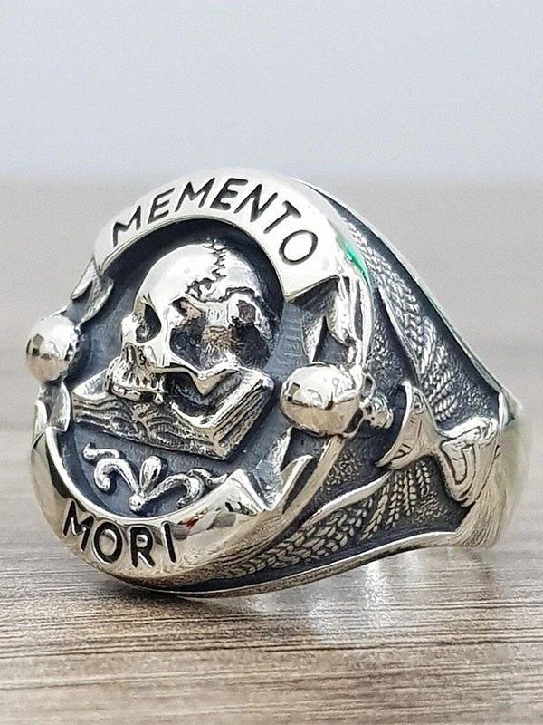 Gravierter Schädel Chunky Dome Ring