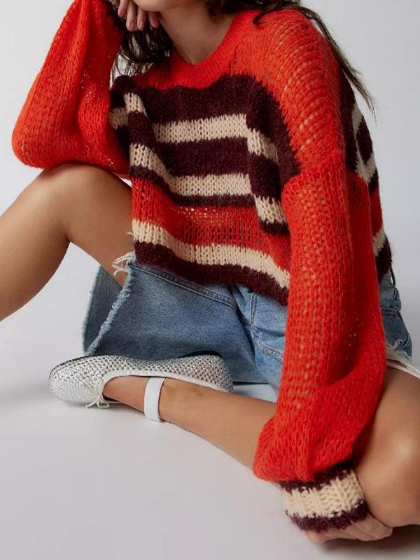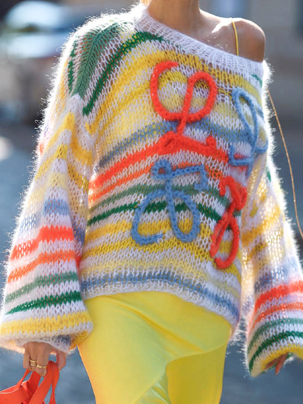 Farbenfrohe, übergroße Pullover mit Schnürung