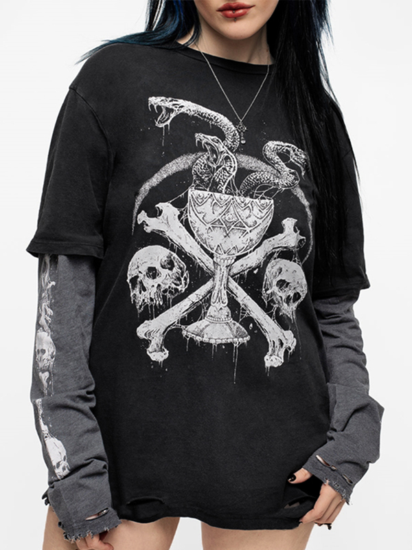 Kurze Ärmel mit kleinem Teufels-Totenkopf-Print