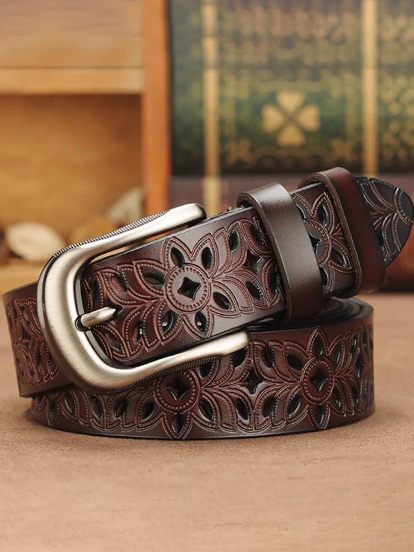 1 Gürtel mit hohler, geschnitzter Kreuzschnalle