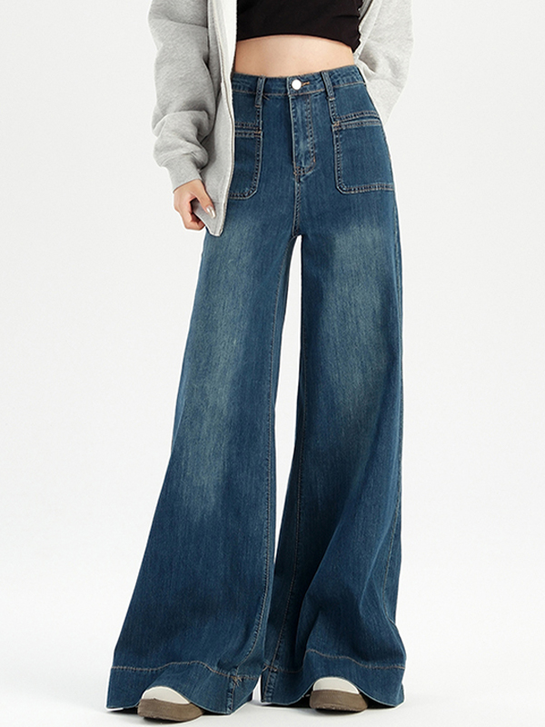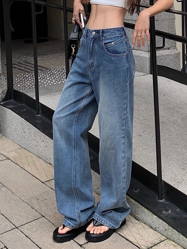 Vintage gerade Boyfriend-Jeans in blauer Waschung