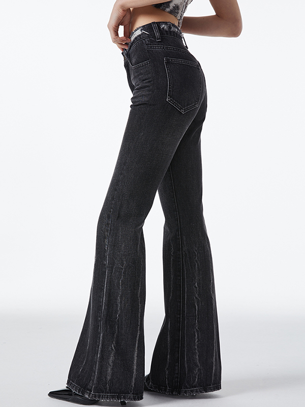 Verwaschene Bootcut-Jeans mit niedriger Taille